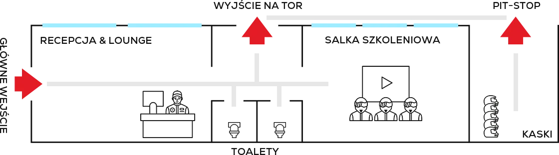Przyjeżdżasz, meldujesz się w recepcji i od razu wchodzisz w tryb wyścigowy. Obiekt jest zaprojektowany tak, żeby działał płynnie — zarówno dla pojedynczych przejazdów, jak i dla większych grup oraz eventów firmowych.